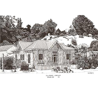 | COLLINGWOOD COURTHOUSE, GOLDEN BAY Pen & Ink Laser Print 297mm x 210mm |