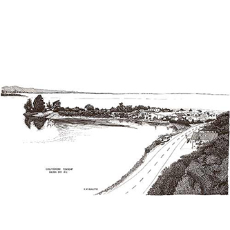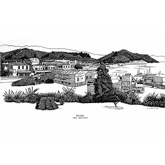 | VIEW OF COLLINGWOOD, GOLDEN BAY Pen & Ink Laser Print 297mm x 210mm |