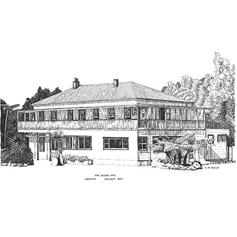 | THE RIVER INN, GOLDEN BAY Pen & Ink Laser Print 297mm x 210mm |