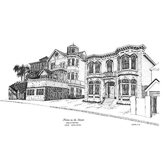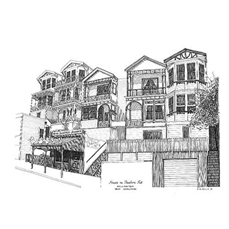 HOUSES ON TINAKORI ROAD, WELLINGTON Pen & Ink Laser Print 297mm x 210mm |
