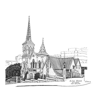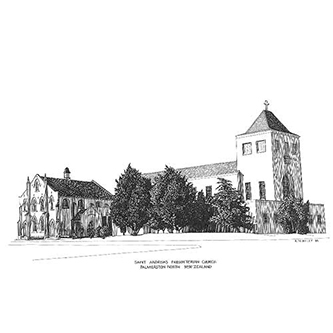 ALL SAINTS, PALMERSTON NORTH Pen & Ink Laser Print 297mm x 210mm |