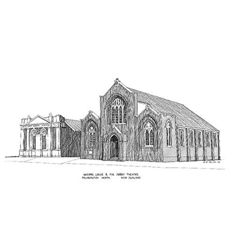 | ABBEY THEATRE, PALMERSTON NORTH Pen & Ink Laser Print 297mm x 210mm |