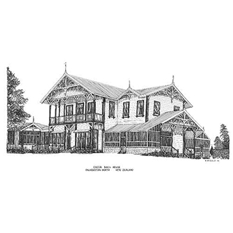CACCIA BIRCH HOUSE, PALMERSTON NORTH Pen & Ink Laser Print 297mm x 210mm |