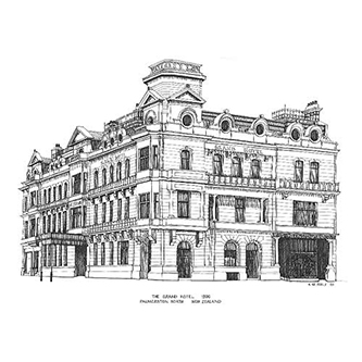 GRAND HOTEL, PALMERSTON NORTH Pen & Ink Laser Print 297mm x 210mm |