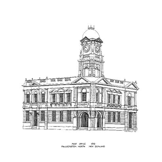 | OLD POST OFFICE, PALMERSTON NORTH Pen & Ink Laser Print 297mm x 210mm |