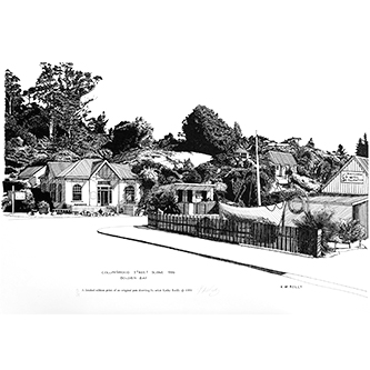 COLLINGWOOD STREET SCENE GOLDEN BAY Pen & Ink Laser Print 297mm x 210mm |
