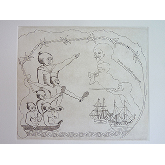 WELL... WE THOUGHT THEY WERE GHOSTS Single Plate Etching Commissioned for project - View On Golden Bay |