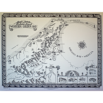 HISTORIC MAP OF NORTHWEST GOLDEN BAY Pen & Ink - Commissioned for Aorere Heritage Trust 560mm x 430mm For Sale |