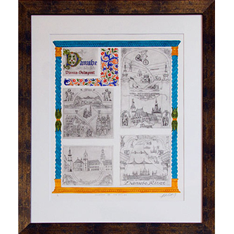 | THE DANUBE Multiple Plate Etchings Hand Coloured with Watercolour Border - One Only 400mm x 320mm |