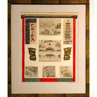 CHINA Multiple Plate Etchings Hand Coloured with Watercolour Border - One Only 400mm x 320mm |