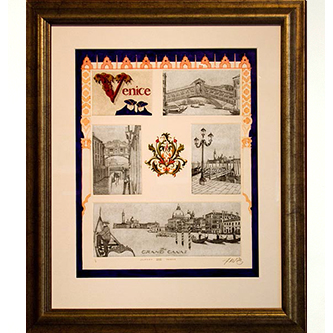 VENICE Multiple Plate Etchings Hand Coloured with Watercolour Border - One Only 400mm x 320mm |